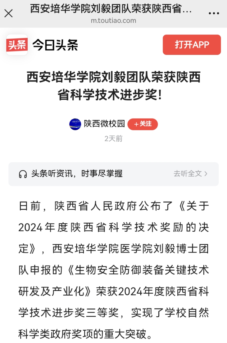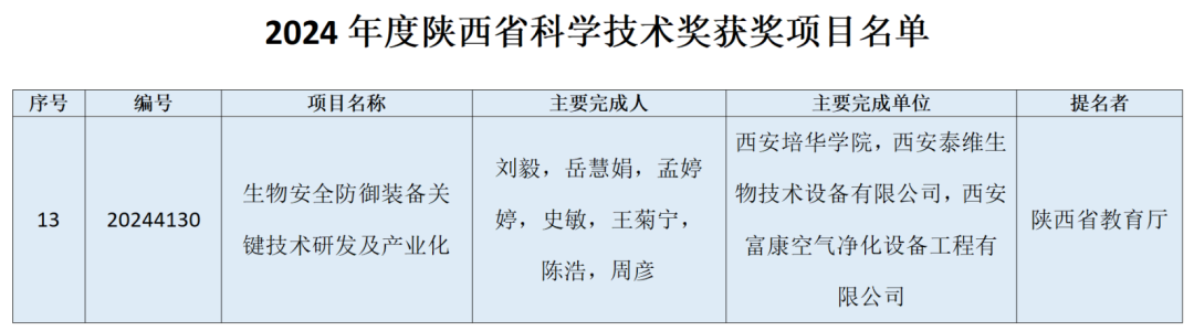 日前,陕西省人民政府公布了《关于2024年度陕西省科学技术奖励的决定》,388vip太阳集团医学院刘毅博士团队申报的《生物安全防御装备关键技术研发及产业化》荣获2024年度陕西省科学技术进步奖三等奖,实现了学校自然科学类政府奖项的重大突破。