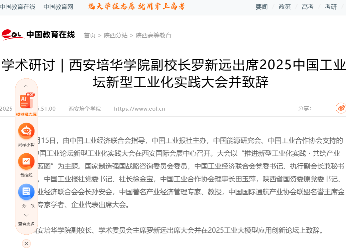他期待与行业专家、企业代表,共同探讨如何在AI赋能工业、智能制造人才培养、关键技术联合攻关、学生实习就业、员工继续教育等领域,开展多层次、多形式的实质性合作,希望通过政、产、学、研、用携手,汇聚起更强大的创新合力,共同谱写产教深度融合、协同创新发展的新华章。