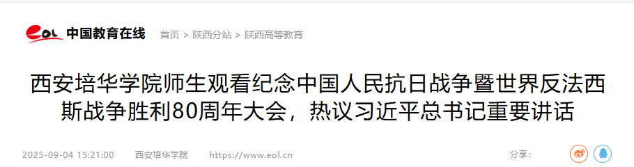 威武帅气、整齐划一的受阅方队令培华师生心潮澎湃!纪念中国人民抗日战争暨世界反法西斯战争胜利80周年大会在全校师生中引发热烈反响。