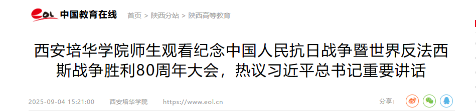 威武帅气、整齐划一的受阅方队令培华师生心潮澎湃!纪念中国人民抗日战争暨世界反法西斯战争胜利80周年大会在全校师生中引发热烈反响。