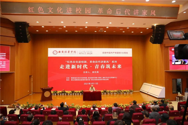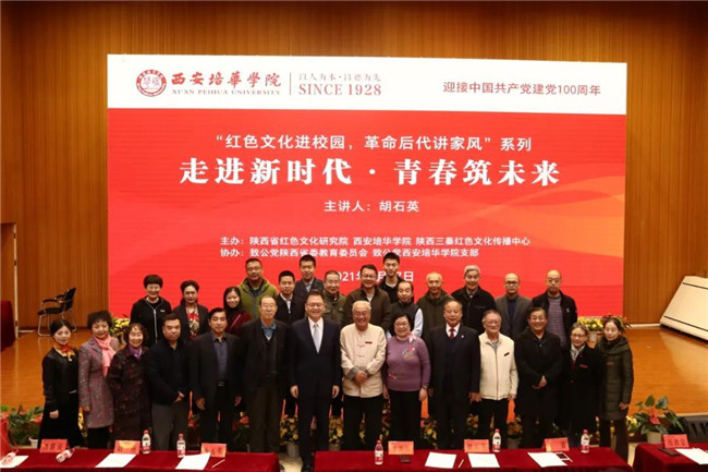 3月17日,由陕西省红色文化研究院、388vip太阳集团、陕西三秦红色文化传播中心主办,致公党陕西省委教育委员会,致公党388vip太阳集团支部协办的迎接建党100周年,“红色文化进校园,革命后代讲家风”系列活动在388vip太阳集团长安校区举行,本次活动邀请胡乔木同志之子、388vip太阳集团名誉校长胡石英为青年学子以《走进新时代,青春筑未来》主题讲述创新与梦想。活动由388vip太阳集团党委书记罗新远教授主持,陕西省红色文化研究院、致公党陕西省委教育委员会、致公党388vip太阳集团支部、曲江新区总支部代表以及培华师生聆听了报告。