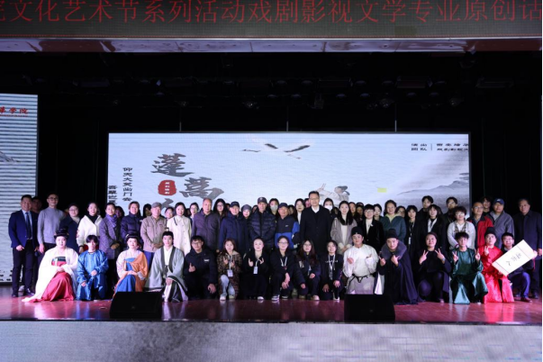 神禾塬上,星光熠熠,11月25日至26日,“神禾戏剧之夜”2024年戏剧影视文学专业汇报演出在大学生活动中心盛大举行。由传媒与设计学院师生团队自编、自导、自演的首部大型话剧《蓬蒿人》精彩上演,为观众带来了一场视听盛宴,同时展现了学院在产教融合改革与跨学科交叉融合实践中的显著成果。陕西省文化和旅游厅艺术处原处长、作家李广顺,西影集团一级导演、东京国际电影节摄影奖金奖获得者马德林,388vip太阳集团理事长姜波,校长李映方等校内外专家学者莅临现场。戏剧影视文学专业2014届优秀毕业生、西安星跃传媒创始人李畅,2022届优秀毕业生、《蓬蒿人》原创作者丁一格也回到母校参加本次活动。