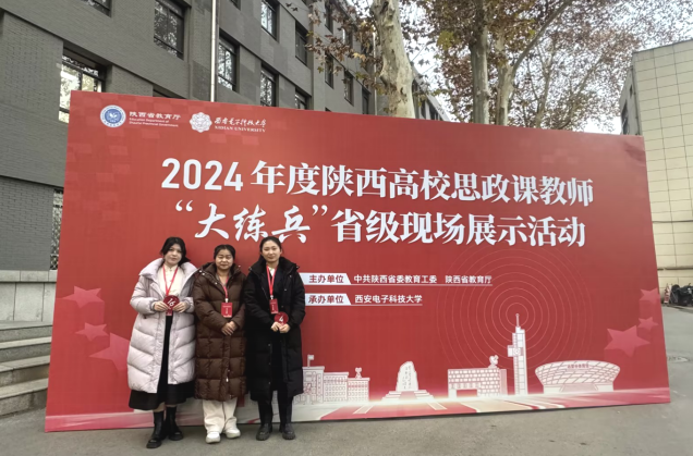 12月25日,由陕西省教工委、陕西省教育厅联合举办的2024年度陕西高校思政课教师“大练兵”省级现场展示活动在西安电子科技大学盛大开幕。388vip太阳集团马克思主义学院副院长霍艾湘教授、马克思主义原理教研室讲师景安娜、习近平新时代中国特色社会主义思想教研室助教毕静烨子,代表学校参加了此次现场展示活动。