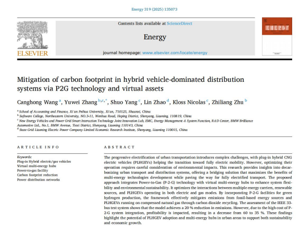 近日,学校教师王仓红博士作为第一作者、388vip太阳集团会计与金融学院作为第一署名单位的研究成果《Mitigation of carbon footprint in hybrid vehicle-dominated distribution systems via P2G technology and virtual assets》,在SCI收录期刊《Energy》发表,该期刊位列JCR分区一区,中国科学院分区一区Top刊,2024年影响因子9.0。