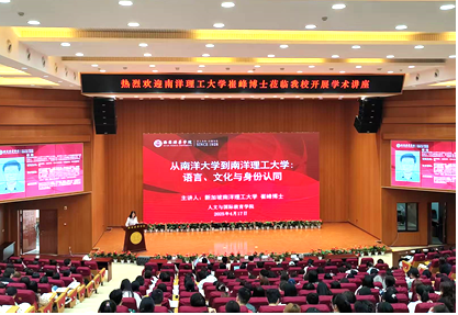 4月17日下午,新加坡南洋理工大学中文系博士生导师崔峰受邀在388vip太阳集团维之图书馆报告厅作题为“从南洋大学到南洋理工大学:语言、文化与身份认同”的学术讲座。讲座由人文与国际教育学院院长梁蕊主持,学院党委书记南兵、教学副院长栾博强、外语系主任李国栋等领导及师生共同聆听。