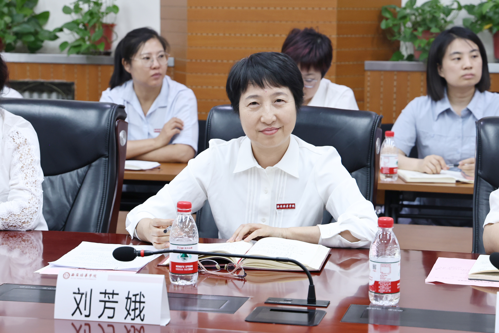 护理系专业带头人刘芳娥教授汇报了护理学专业高质量发展的思路和举措,她提出,护理专业将紧扣“上水平、追卓越”的专业认证目标,从课程体系优化、师资队伍建设、实践教学改革、产教研融合四个维度进行全面提升。