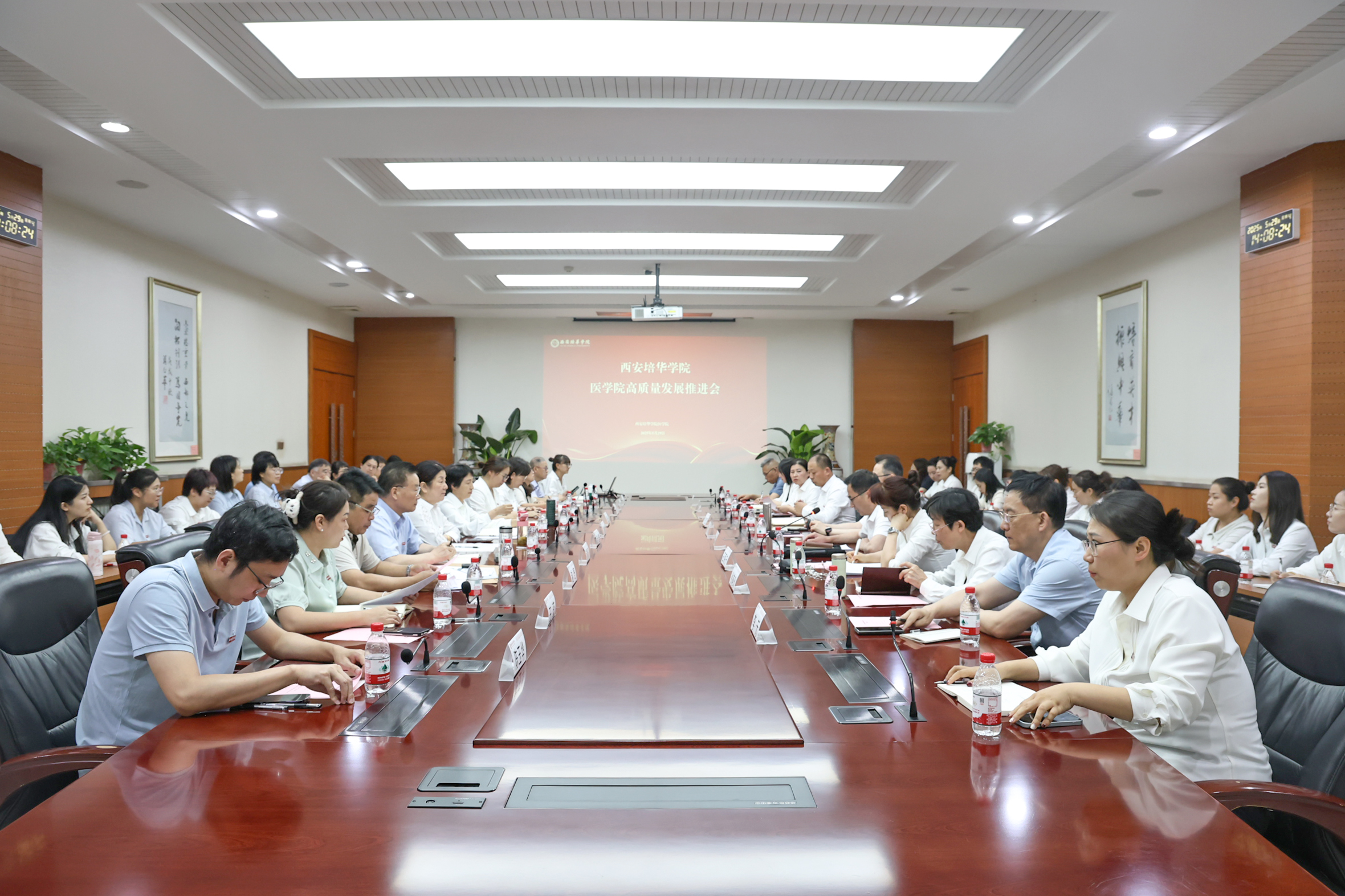 理事长认真听取了学院及各专业的汇报,并就医学院提升发展质量、推进可持续发展作出了重要指示。理事长指出,实现高质量发展:一是要明晰高质量发展的目标、实现路径,构建高质量发展的评价标准和评价主体;二是需聚焦“十四五”期间的总结与反思,“走出去,请进来”制定和布局“十五五”规划;三是医学院要全面解放思想、创新改革,实现错位发展,全面加强师资队伍建设、改革人才培养模式、深化校企合作,形成教育链、人才链、产业链的完整闭环设计,实现交叉融合的复合型人才定制培养,使就业率、就业质量走在前列;四是要做好“一院一策”改革方案,用好行业企业优质资源,开展对外合作与交流,产出高质量成果。