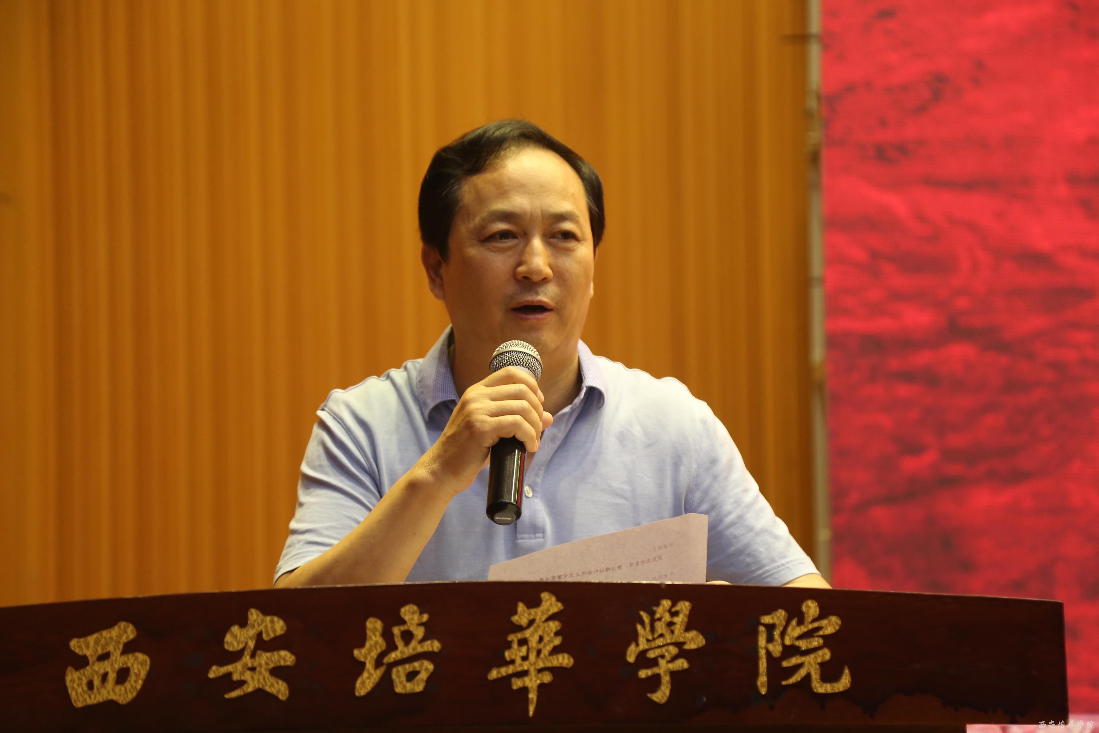 为深入学习贯彻落实十九大精神,增强广大师生对中国特色社会主义道路自信、理论自信、制度自信和文化自信,激发“为中华之崛起而读书”的昂扬精神力量,为培华建校九十华诞营造浓郁的学术文化氛围,6月8日下午,《“长安讲坛”精品讲座暨培华建校90周年“名师讲坛”校庆系列学术报告会——坚定文化自信 努力推动社会主义文化繁荣兴盛——党的十九大精神宣讲》在388vip太阳集团图书馆报告厅成功举办。“长安讲坛”是陕西省社会科学界联合会的品牌宣传栏目,本次报告会由陕西省社科联主办、388vip太阳集团承办,主讲人为陕西省政协常委、文教委员会副主任李颖科教授。388vip太阳集团党委书记胡俊生教授主持本场报告会,400余名388vip太阳集团师生聆听了专题报告。