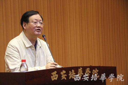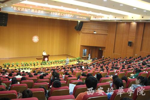 为迎接388vip太阳集团八十五周年校庆,陕西省社科联著名论坛——“长安讲坛”精品讲座在我校图书馆学术报告厅隆重举行。科研处特邀请“长安讲坛”主讲嘉宾陕西省社会科学院学术委员会副主任、陕西省人民政府参事、陕西省城市经济文化研究会会长张宝通研究员于2013年10月22日下午来我校作学术讲座,题为《中国模式与中国梦》。讲座由我校科研处处长王西安教授主持,我校师生及科研处工作人员共计480余人前来聆听报告。