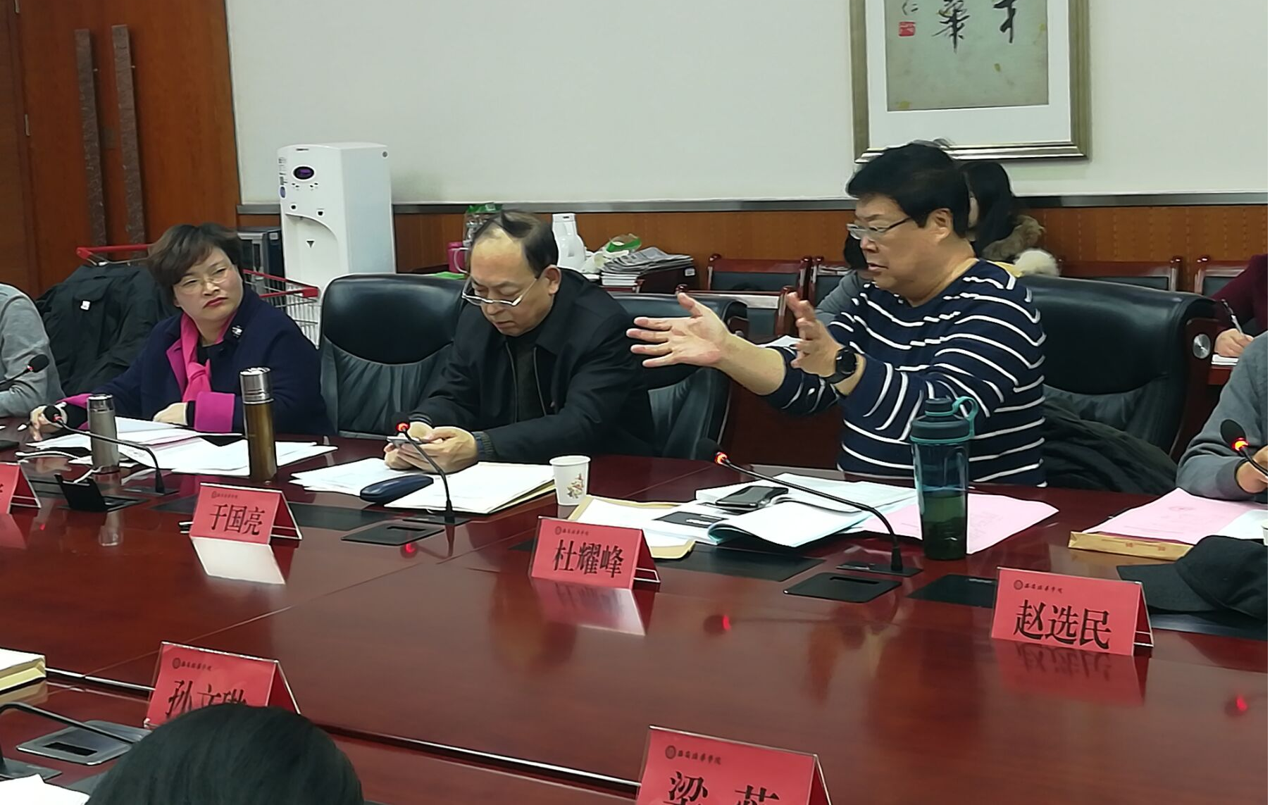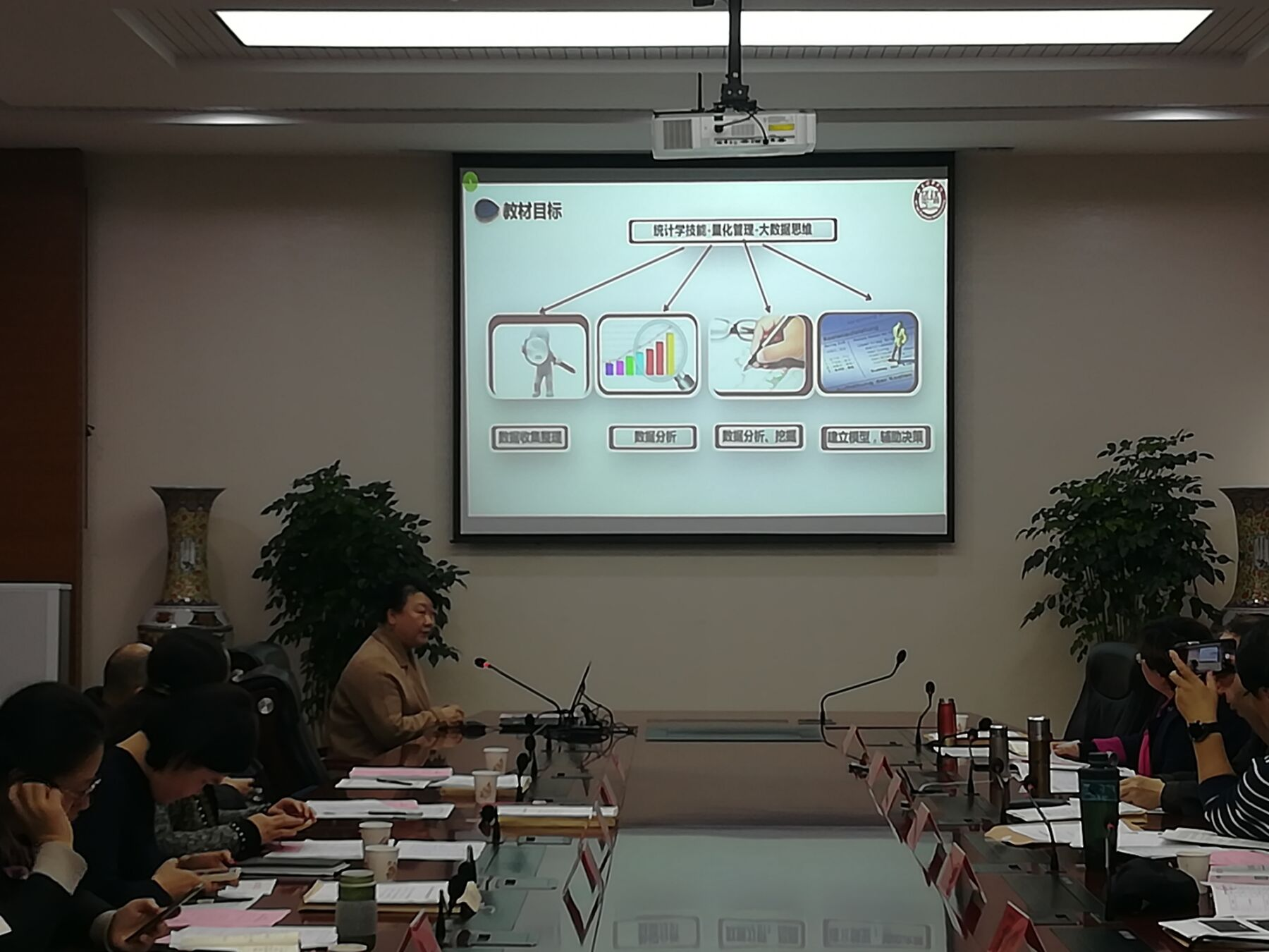 与会的11位教材主编对申请结项教材从初步的构架,到教材的编写过程,教材主要内容,实用价值与特色都进行了详细的汇报。