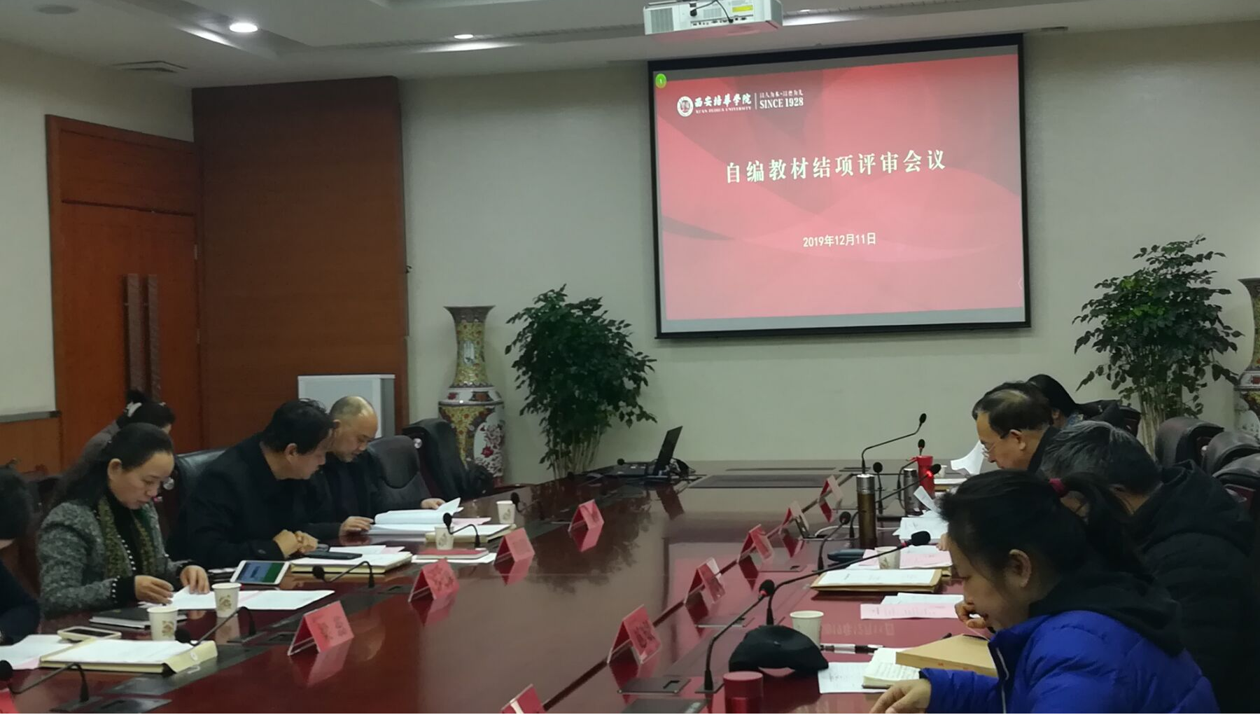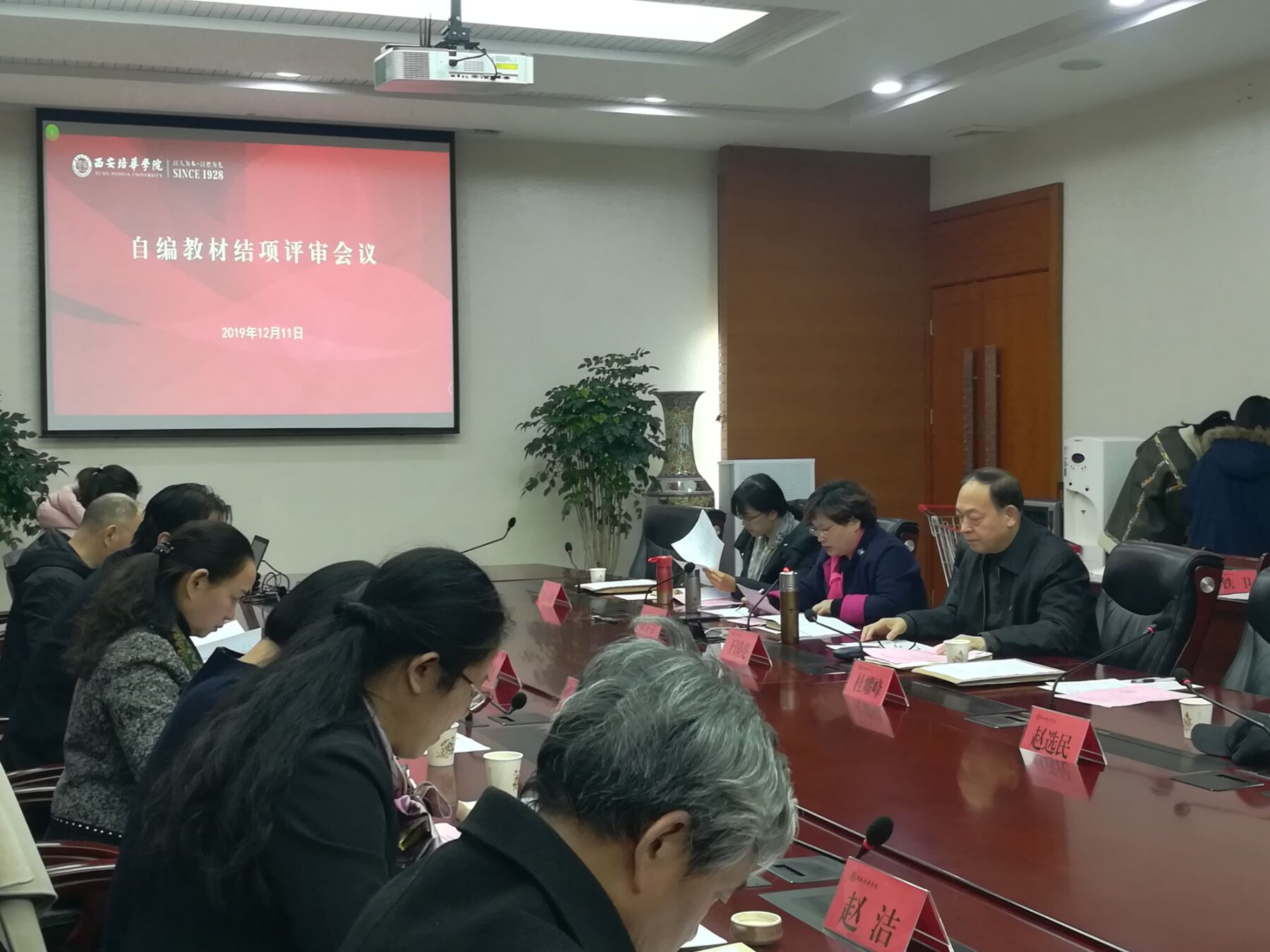 2019年12月11日下午,388vip太阳集团教材建设委员会2019年自编教材结项评审会在明德楼第一会议室召开。教材建设委员会主任于国亮教授、教材建设委员会副主任唐学学等13位委员专家,以及11位申请自编教材结项的教材主编参加评审会。评审会由教务管理中心常务副主任、教材建设指导委员会副主任唐学学主持。