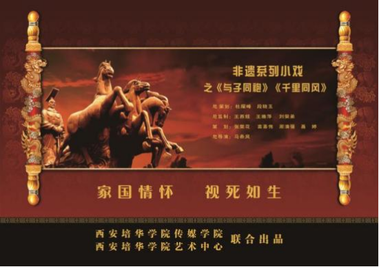 第二场表演的非遗剧目为《千里同风》,故事讲述了三年战乱,民不聊生。金国打仗数年,却一直僵持不下。情急之下将军私自与楚国协商并达成协定。可万万没想到,诡计多端的楚王竟命人盗取虎符。班师回朝之日。王上大发雷霆,将军知道自己惹了大祸。王上不忍处罚金国唯一的武将后代,让他先回家。将军和母亲讲了事情经过,为给金楚两国一个交代,将军自杀,母亲自尽。