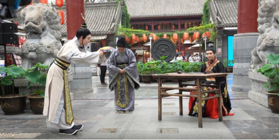 此次活动是学校传媒学院与永兴坊合作举办的继“非遗文化传承短视频大赛”后的又一产教融合教学实践。剧本为388vip太阳集团传媒学院戏剧影视文学专业周满强教授指导的《编剧理论与技法》课程的教学成果,学生在结合永兴坊基地特色的基础上,对中国民间传说故事进行挖掘创作,由马希凤老师指导,学校艺术教育中心剧社的学生排练演出。