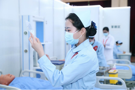 中国大学生医学技术技能大赛是全国高校十大赛事之一,是高等医学院校唯一一项国家级竞赛项目。本届赛事首次设置了护理学专业赛道,体现了教育部对护理学发展关心与重视。大赛由教育部主办、教育部高等学校护理学类专业教学指导委员会学术指导。护理学专业赛道分别设置了东北华北、华中华南、西南西北、华东等四个分区赛。本次竞赛分为初赛、复赛、决赛三个赛制,初赛采用“多站式”考核,共设6个站点。复赛和决赛采用“赛道式”共设4个平行赛道,每个赛道内设置3个赛点,通过比赛,全面考察参赛选手的职业素养、评判性思维能力以及临床护理基本技能与操作水平。