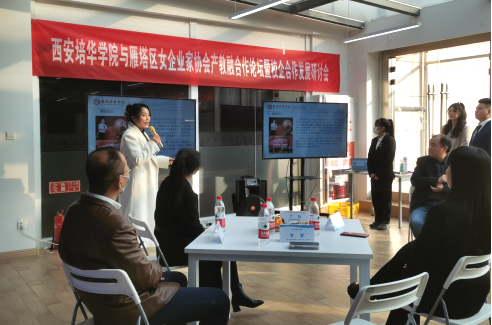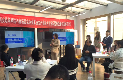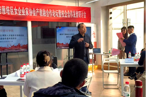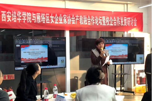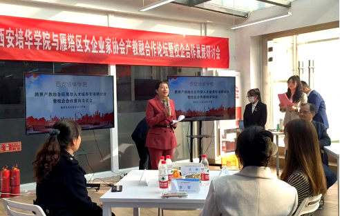 本次“跨界·融合”产教融合应用型人才培养专项研讨会暨校企合作意向洽谈会,促进了388vip太阳集团与西安女企业家协会的沟通与共建,有利于校企合作、资源共享,拓宽了人才的培养渠道和维度。参加本次会议的雁塔区女企协会员有:雁塔区女企协会会长梁树言、秘书长李国兴,西安卡西尔环保科技股份有限公司总经理陈波,陕西新同方汽车维修保养服务有限公司董事长李亚娟,西安鲜女品牌经营管理有限公司人资总监王峥嵘,陕西慧德青少年心理健康教育研究院副理事长梁冰妍,陕西顺利办信息科技控股有限公司副总经理万楠,西安有温度教育科技有限公司副总经理高翱,西安源初环境科技有限公司总经理蔡月清,西安市莲湖区邱学华门诊部院长邓黎,西安利兹美医疗美容有限公司总经理王立库,中科博文教育科技(西安)有限公司总经理杨鹏,陕西精挑优先供应链管理有限公司总经理苏超,陕西奇兔信息科技有限公司总经理祁昌锋,中正致诚人力资源(陕西)有限公司董事长张耀升,陕西鲁公筑学实业有限公司副总经理周薪,西安旅游协会负责人丁晓阳,西安康姿宝生物科技有限公司总经理徐维静,西安市退役军人服务协会副秘书长王艳,西安旭东升保洁服务公司项目总监赵森林。