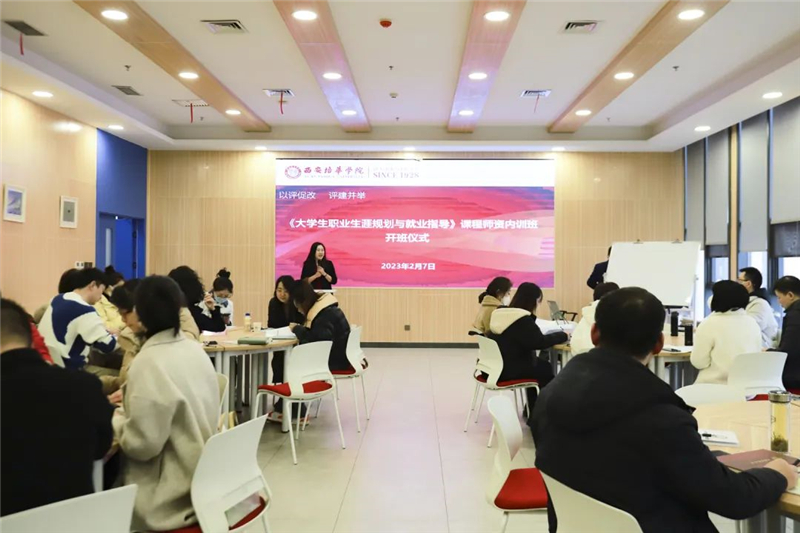 2月7日上午,学生潜能发展中心韩赟主任在恒友楼一楼团体辅导室主持举行了培训的开班仪式。本次培训旨在加强学校生涯规划与就业指导教师队伍建设,打造高水平生涯规划与就业指导教师团队、提高学校《大学生职业生涯规划与就业指导》课程教学质量,为促进学校学生有目标、有规划、有动力学习生活、高质量就业、顺利完成学社衔接提供有力保障。