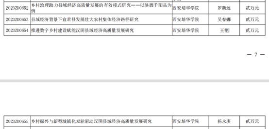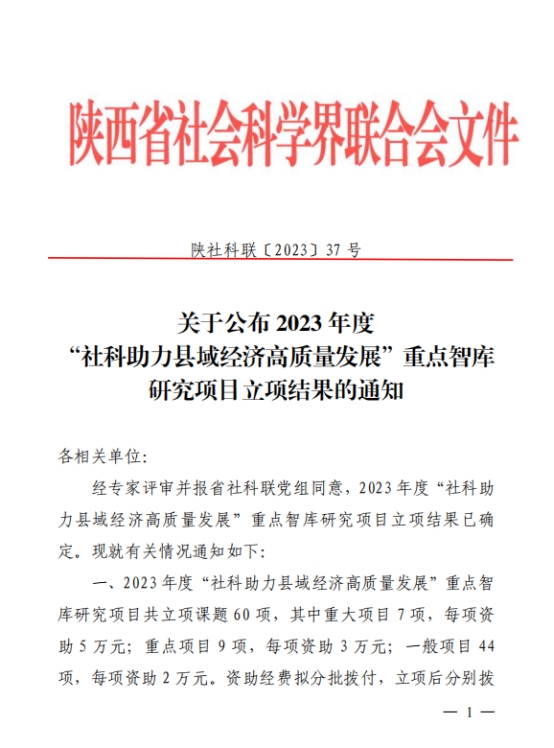 近日,陕西省社科联公布了2023年度“社科助力县域经济高质量发展”重点智库研究项目立项结果,其中,学校罗新远、吴春娜、王艳、杨永庚4位老师申报的课题获批立项。