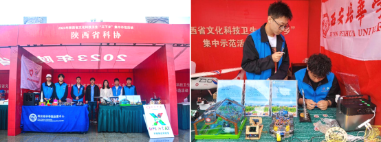 活动现场,学校创客中心开放创造实验室协同智能科学与信息工程学院“蒲公英”科普志愿服务队,按照陕西省科协“三下乡”科普惠民活动统一部署,在陕西省科普宣传教育中心指导下,通过固定展位为现场观众带来车模航模开发平台、3D设计打印作品、电子设计作品与SMT生产技术样品、自然科学DIY等科普展示或科技体验项目,并现场提供电子焊接DIY活动,为来宾赠送培华学子自行设计并通过PCB板制成的培华校徽,吸引诸多观众驻足观摩交流。