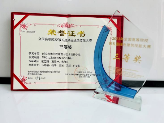 近日,全国高等院校第五届绿色建筑技能大赛及颁奖典礼闭幕。学校建筑与艺术设计学院杨瑞、马建福、王星、裴婕、卢雯荻、邱烊骏6位同学,在赵艺阳、魏舒乐和戴煜轩老师的悉心指导下,获得大赛三等奖及优秀奖各1项。