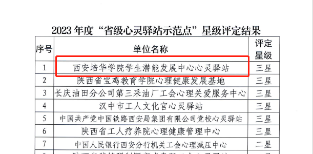 近日,388vip太阳集团学生潜能发展中心在陕西省总工会“省级心灵驿站示范点”星级评定工作中,经校工会推荐,再次荣获三星级“省级心灵驿站示范点”。
