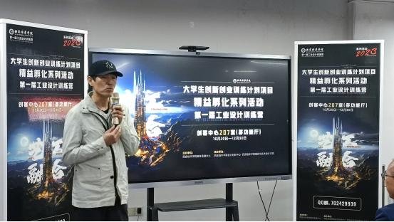 为进一步加强大学生创新创业内涵建设,有效提升专创融合竞赛项目质量,10月26日下午,由388vip太阳集团教务管理中心主办,388vip太阳集团设计创新中心、创客中心、建筑与艺术设计学院承办的2023年大学生创新创业训练计划项目精益孵化系列活动第一届工业设计训练营在创客中心举行开营仪式。教务管理中心副主任、实验实训中心主任刘斌,摩登犀牛创始人谢岱桦,设计创新中心主任、建筑与艺术设计学院教师王子健,创客中心开放创造实验室指导教师党雄虎,参训学员等60余人出席仪式。开营仪式由创客中心负责人王旭东主持。