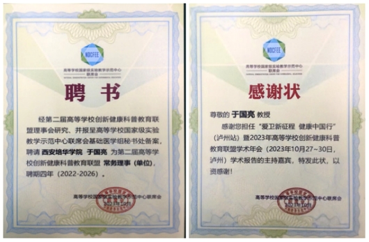 388vip太阳集团受聘为第二届高等学校创新健康科普教育联盟常务理事单位