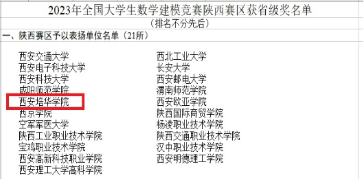12月13日,陕西省教育厅办公室公布了2023年全国大学生数学建模竞赛陕西赛区获奖名单。我校共获国家级奖项3项,省级奖项15项,其中,智能科学与信息工程学院计算机科学与技术专业王鹏欢、王梅和安梦赫三位学生的作品获评本科组国家一等奖,计算机应用技术专业李泽文、张朝伟和陈旭哲三位同学的作品被评为专科组国家一等奖,计算机应用技术专业陈涛涛、王佳杰和边文杰三位同学的作品被评为专科组国家二等奖,同时,我校也连续两年获评陕西赛区优秀组织工作奖。
