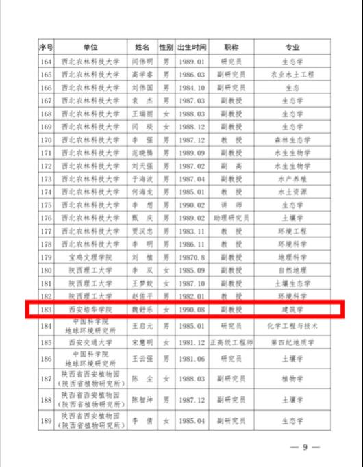 近日,共青团陕西省委依托秦岭生态环保“青年学者”专家委员会开展第三批秦岭生态环保“青年学者”选聘工作。经过个人申报、单位评议、专家评审等环节,智能科学与工程学院副教授魏舒乐老师成功入选第三批秦岭生态环保“青年学者”。