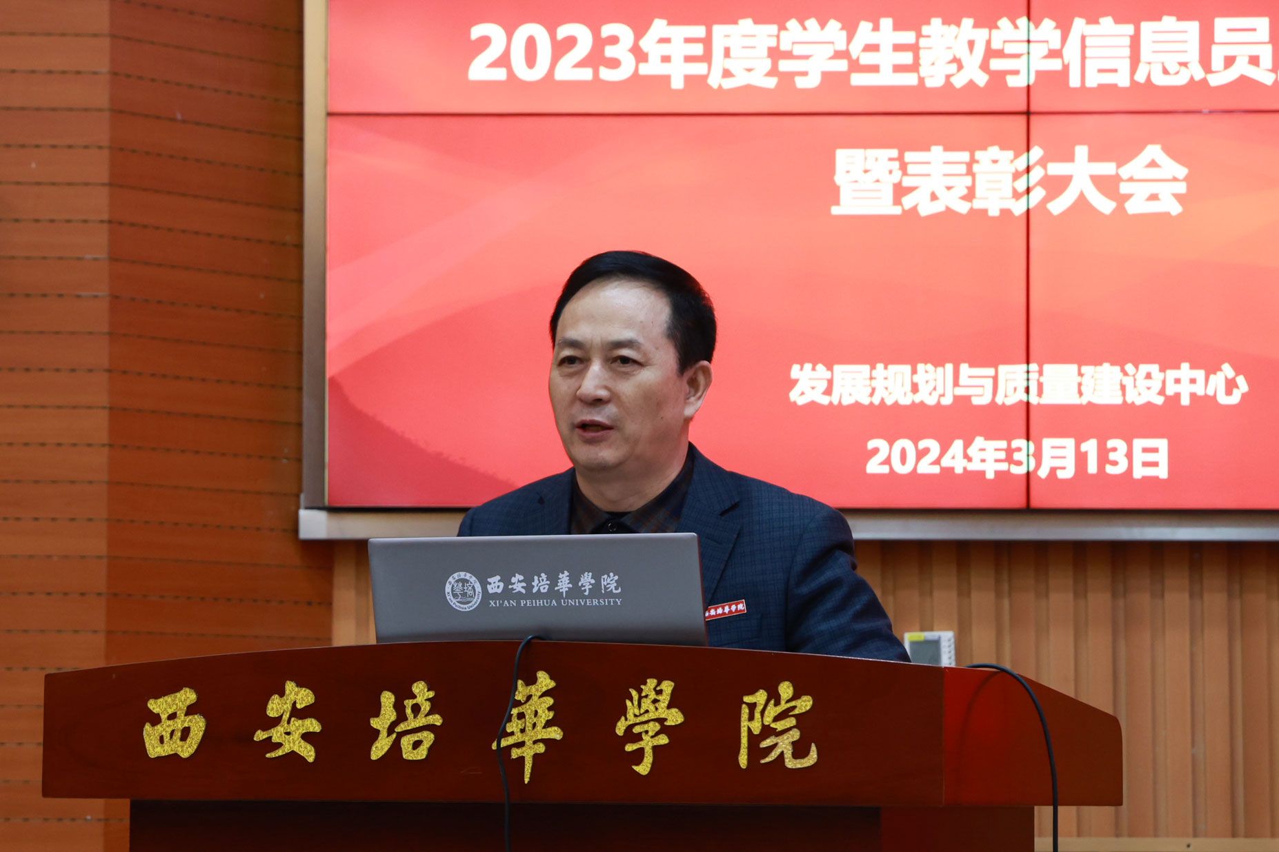 会上,发展规划与质量建设中心主任赵巍宣读《388vip太阳集团关于表彰2023年度优秀学生教学信息员的通报》;优秀学生教学信息员代表、人文与国际教育学院信息分站站长李慧琳同学发表了感言;发展规划与质量建设中心督导办公室主任王西娅发表讲话。