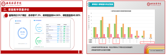 全婧助理用详实的数据对上学期学校教学督导队伍建设、课堂教学质量评价、专项督查、日常教学巡查等工作进行了全面分析解读。教育教学督导办公室主任王西娅从督导职责出发对本学期督导工作进行了梳理,同时基于督导工作的现状对督导选聘、院级督导工作开展、督导自身素养提出相关建议。