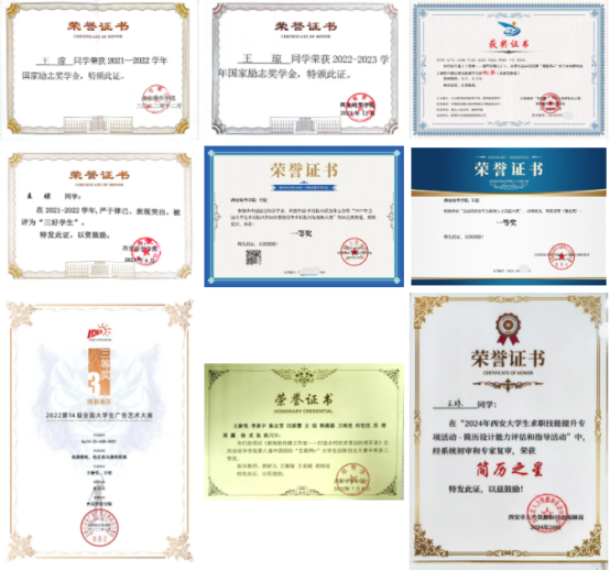 王琼的“学霸”之路,不止于课堂。全国高校青年互联网人才技能大赛初赛一等奖、全国大学生乡村振兴知识科普暨青年乡村振兴短视频大赛知识竞赛一等奖、全国大学生广告艺术大赛省级三等奖、第九届中国国际“互联网+”大学生创新创业大赛陕西赛区铜奖……荣誉墙上的每枚奖牌,都见证着她将理论转化为实践的能力。当别人都沉浸在舒适区时,她正带着团队通宵修改参赛方案;当同龄人享受周末时光时,她却奔波于主修与辅修课堂之间,用电子商务辅修证书为新媒体专业插上跨界翅膀。