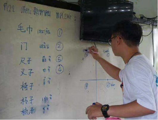 黄煜聪在泰国清迈Wat Ban Noi小学进行NGO组织教学互动