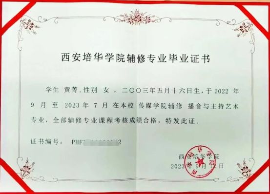 辅修播音与主持艺术专业,是黄菁大学做过最难的选择,面对一学年比其他同学多10节专业课、256个学时的状况,她周末上课、全年无休,一年来几乎每天都要奔波于培华校园之中。“回望一年来的辅修生活,我深深地感谢这段欢乐而又忙碌的生活。面对的是没有周末、接踵而来的大作业、要考十几门专业课的考试周,我需要学会时间管理、学会坚持、学会抵挡诱惑以及耐得住寂寞。”