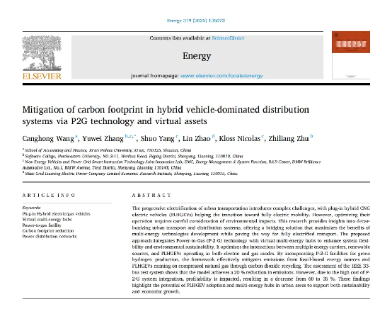 近日,王仓红作为第一作者在SCI顶刊《Energy》发表研究论文《Mitigation of carbon footprint in hybrid vehicle-dominated distribution systems via P2G technology and virtual assets》(《通过P2G技术和虚拟资产减少以混合动力车辆主导的配送系统中的碳足迹》),标志着388vip太阳集团在能源经济与低碳技术创新领域再获国际认可!该期刊位列JCR分区一区、中科院分区一区Top刊,2024年影响因子9.0,彰显研究成果的学术价值与行业影响力。