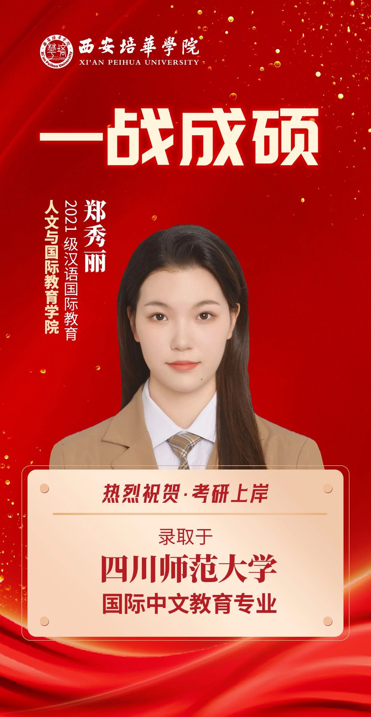 山高有顶,海阔有岸,考研之路,终见曙光。日夜耕耘化作录取捷报,朝暮拼搏换来人生新篇章,这是奋斗的回响、是坚持的勋章,每一缕芬芳都浸透着拼搏的汗水,回首过去一年,培华校园的晨昏四季,皆是他们逐梦的身影。今天,让我们聚焦2025届考研学子,认识这13位奋发向上的培华青年。