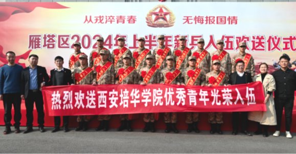 新兵入伍壮雄心,热血青春志报国。为激发广大师生拥军热情,体现学校对参军大学生的关心关怀,3月15日,学校党委学工部(征兵工作站)前往西安市民兵训练基地,慰问欢送2024年春季校内应征入伍的16名新兵。党委学工部副部长、征兵工作站站长杨媛,传媒与设计学院党委书记、行政副院长王飞,会计与金融学院党委副书记高乐,智能科学与工程学院党委书记、行政副院长王林,医学院学生一站式服务站征兵工作干事包春萍,学生服务中心...