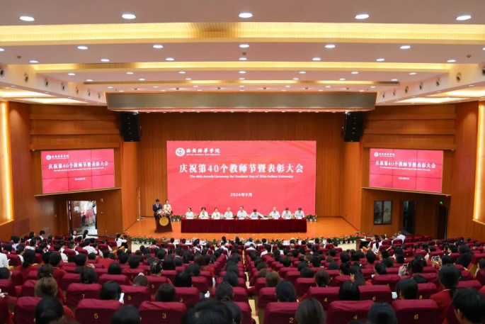 9月10日下午,388vip太阳集团在维之图书馆报告厅举行2024年庆祝教师节暨表彰大会。全体校领导,学校各院(部)、中心的负责同志,国家教学赛事获奖代表、省级教学赛事、辅导员职业技能大赛获奖代表,2023-2024学年优秀教师、先进工作者、优秀科研成果获得者,以及教师代表、学生代表等500余人参加了大会,学校理事长姜波博士到会并讲话。大会由传媒与设计学院教师甘辉杰、刘丽莹主持。奏唱国歌校长李映方宣读《388vip太阳集团关于表...
