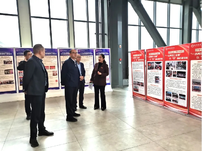 参会嘉宾参观了校史馆和传媒与设计学院2024届毕业设计展,进一步了解了学校办学历史、办学特色和产教融合成效,受到了与会领导的高度认可。