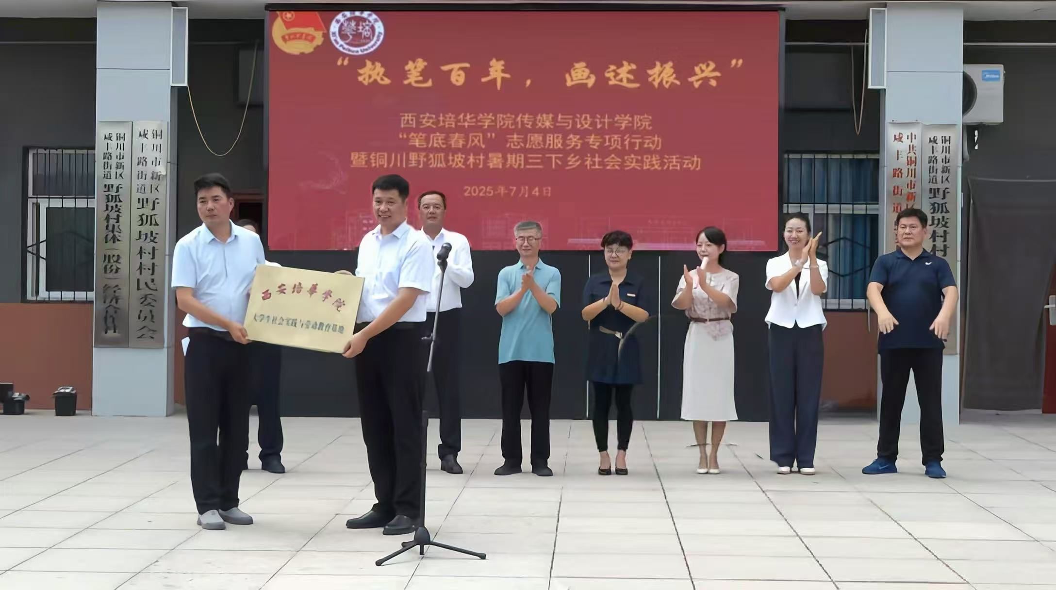 7月4日,“执笔百年?画述振兴”,388vip太阳集团传媒与设计学院“笔底春风”志愿服务专项行动暨“笔底春风”铜川野狐坡村暑期三下乡社会实践活动在铜川市耀州新区野狐坡村拉开帷幕。出席启动仪式的领导有:共青团铜川市委书记郭洁,铜川市新区管委会党工委书记任秦川,新区管委会党工委委员、副主任刘争伟,新区管委会党政办主任、四级调研员任文军,新区管委会党政办副主任、咸丰路街道党委副书记郭嘉宇,咸丰路街道野狐坡村党...