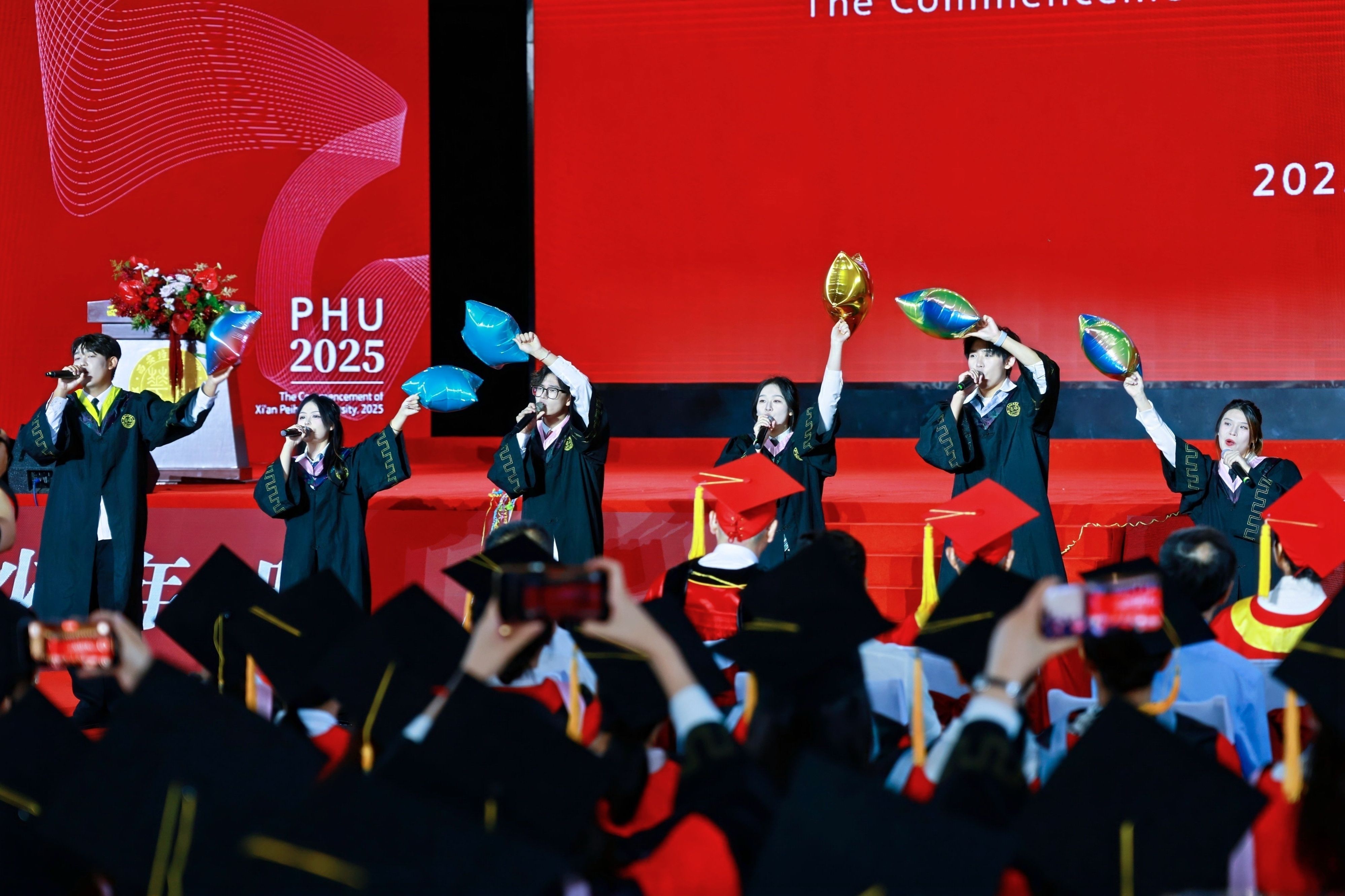 典礼在音诗画情景表演《七律·毕业季——过秦俑有寄》中拉开序幕。悠扬的旋律、深情的朗诵与富有张力的舞台画面交织融合,将百年培华的厚重底蕴与当代青年的蓬勃朝气巧妙联结。