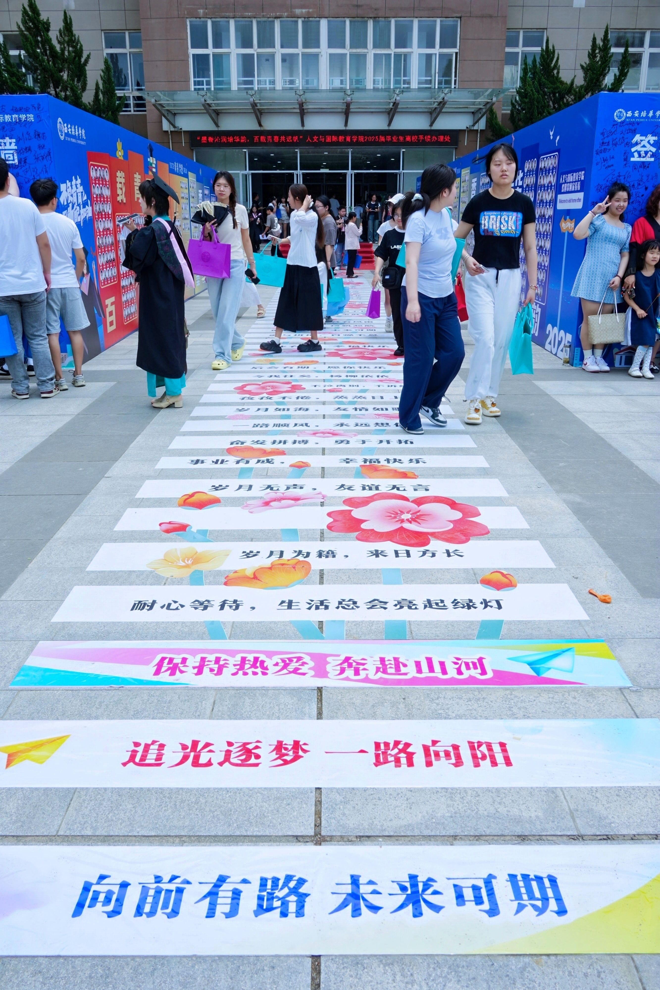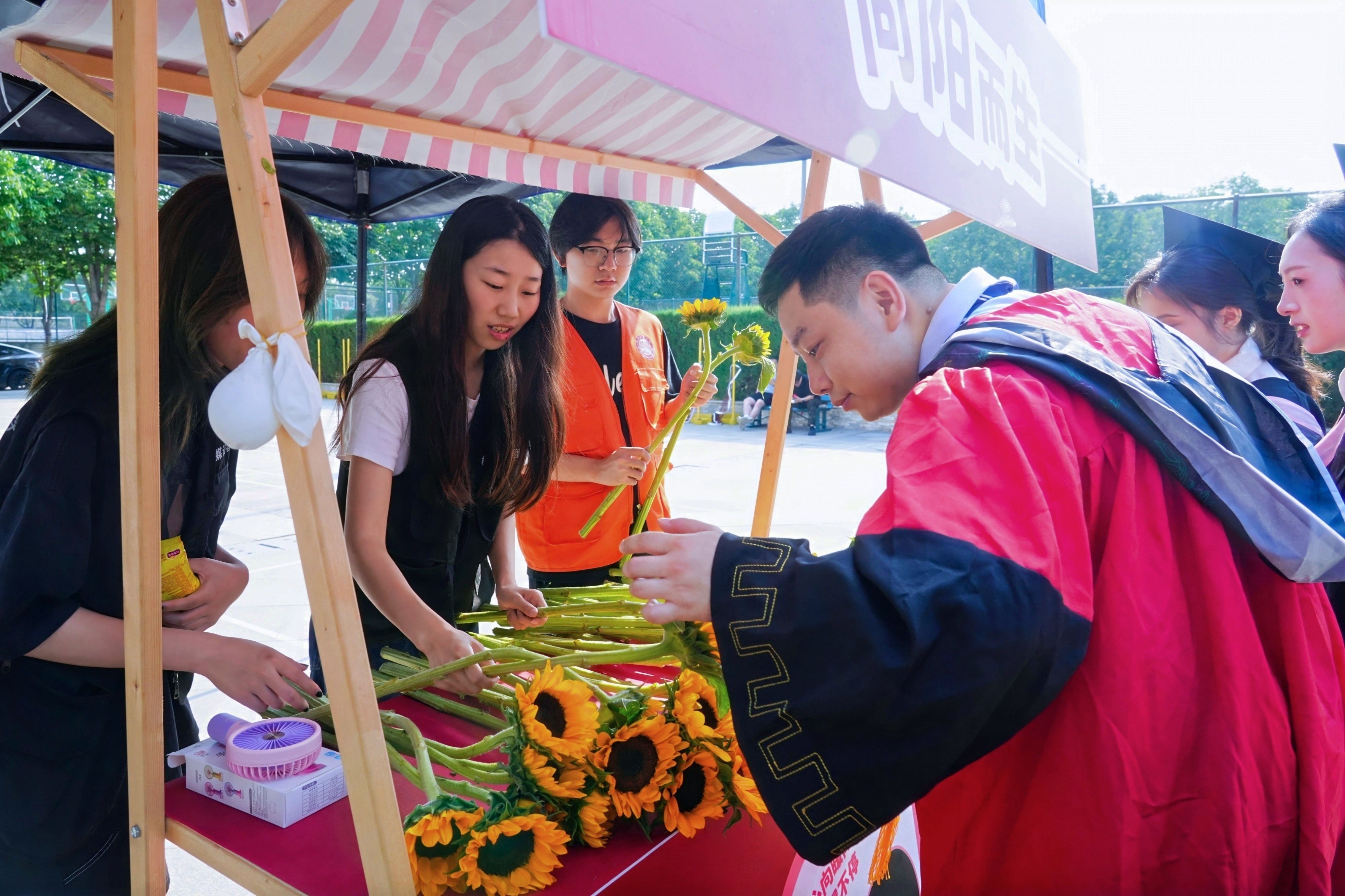 场馆外,学校特别设立了“向阳而生”“桃愿似锦”“甜绎未来”“长安的荔枝”“饺蕴乾坤”的毕业互动花车,为学子们送出一份温暖,毕业生们纷纷合影留念。